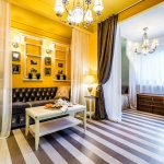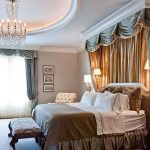- Anda dapat meningkatkan ketinggian bilik secara visual dengan memaku cornice ke siling dan meletakkan langsir di lantai.