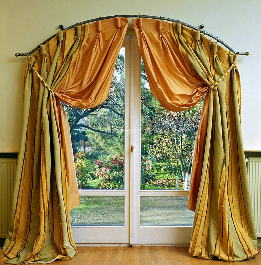 Sudah menjadi semakin jarang menggunakan langsir sebagai ganti pintu untuk menutup bukaan, tetapi dengan ciri perancangan tertentu, ini adalah pilihan yang sangat tepat. Bilik-bilik ini harmoni di bilik-bilik klasik dengan pintu besar. Tirai boleh mempunyai pelbagai penambahan hiasan, misalnya, lambrequins. Foto langsir reka bentuk ini jelas menunjukkan bagaimana anda boleh membahagikan bilik, memberi mereka keselesaan dan menutup pelekap dengan penambahan kain asli.