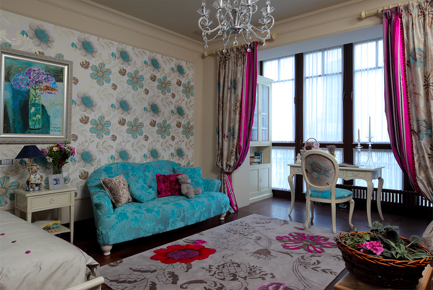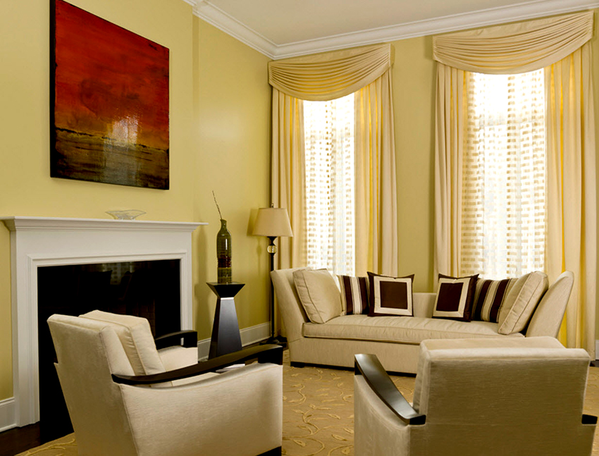- Sekiranya bilik dihiasi dalam satu warna, ia harus dilindungi dengan tirai. Kain tirai tidak boleh dicampur dengan perabot dan dinding.