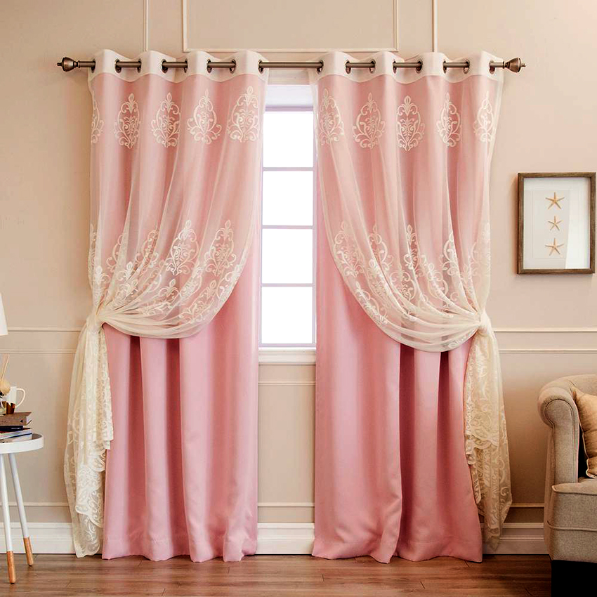 Langsir pada kelopak mata sangat menyenangkan secara estetik. Kain berkumpul dalam lipatan yang sama ketika ditutup, dan cincin itu sendiri adalah elemen hiasan.