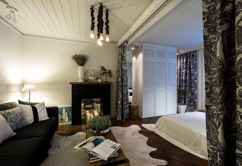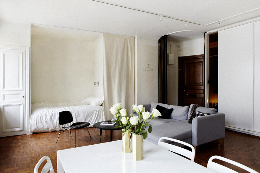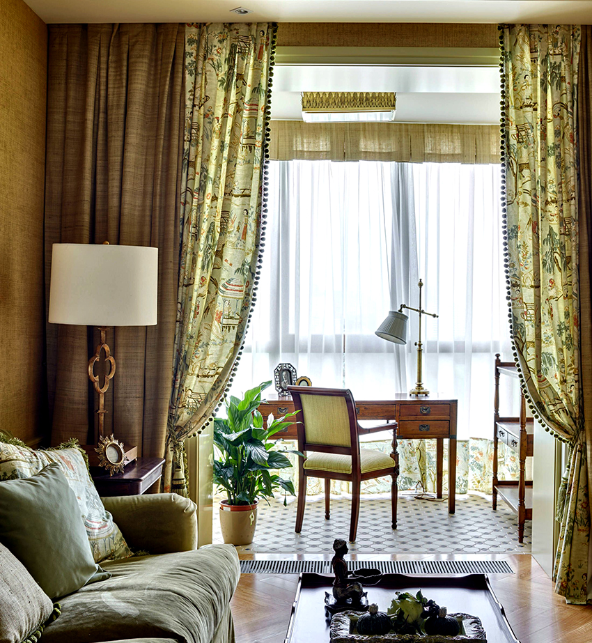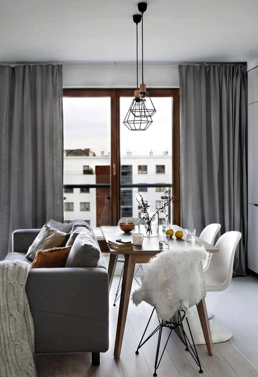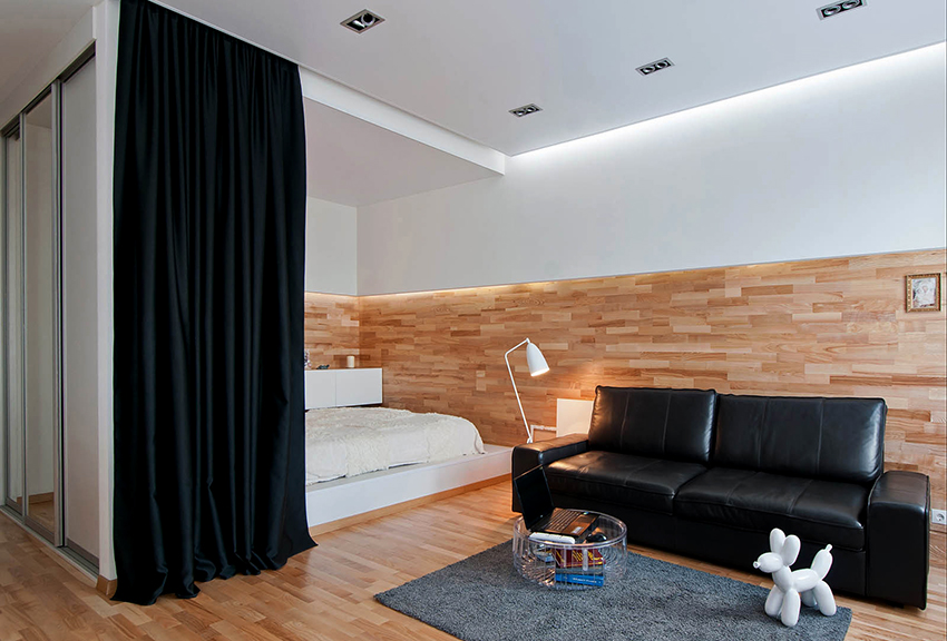 Penggunaan tirai tebal di bahagian dalam bilik kecil