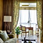 Sekiranya ada keperluan untuk menggantung langsir malam, lebih mudah memindahkannya ke dinding pada waktu siang. Hiasan menarik yang menyumbang kepada penggunaan blok balkoni yang selesa boleh dilabuhkan dengan langsir, dan dengan hiasan yang tidak simetri. Bahagian tingkap dipasang di bawah, bahagian pintu - di atas. Ia asli dan menyediakan akses percuma ke pintu balkoni.