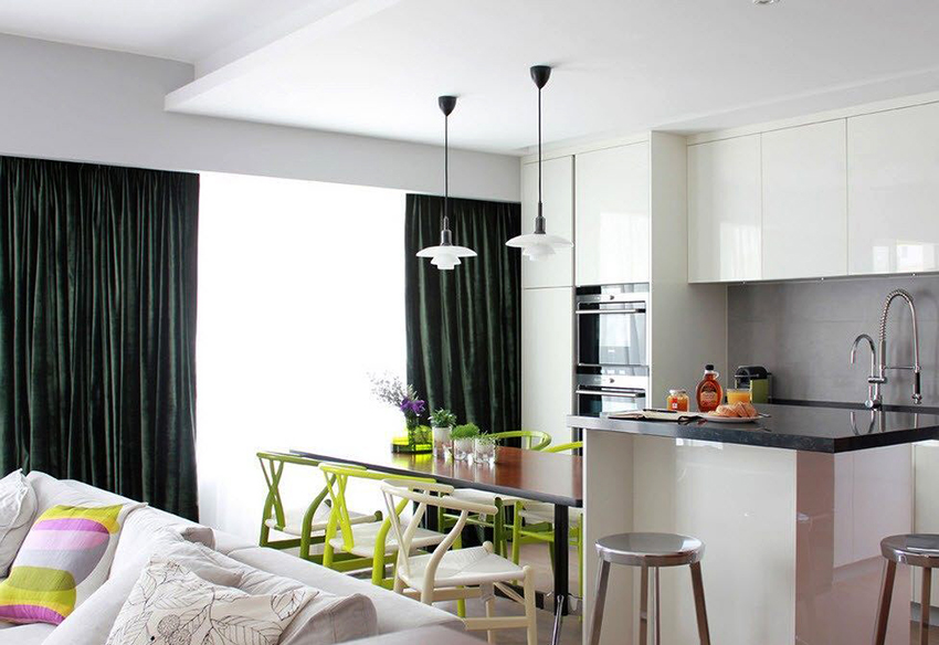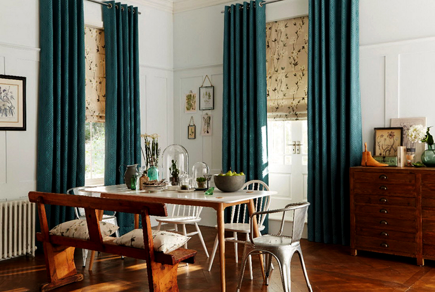 Ciri-ciri pilihan langsir di dapur, ruang tamu dan bilik tidur. Jenis produk utama dalam warna dan saiz. Keaslian bahan dan gaya.