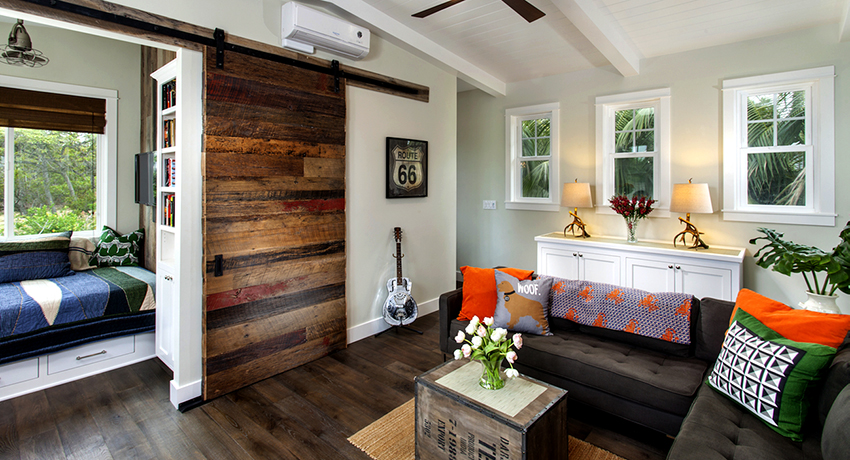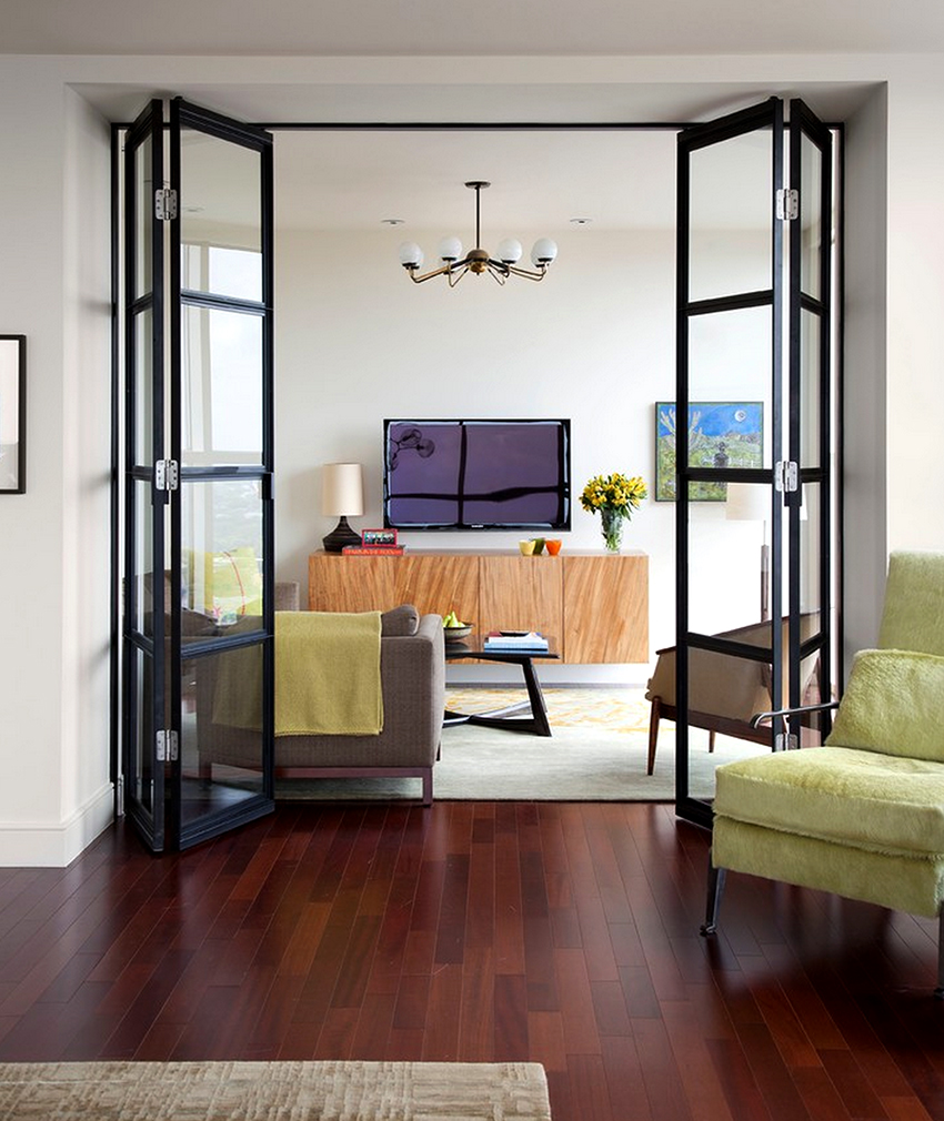 Nasihat berguna! Model pintu gelangsar seperti akordeon dan buku sangat sesuai untuk lorong dan koridor sempit, kerana ia boleh digunakan di mana pilihan lain tidak mungkin dilakukan.