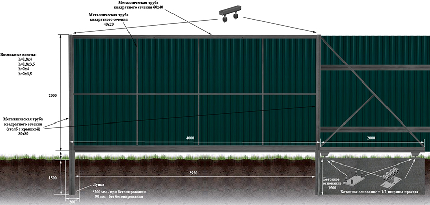 Penting! Sekiranya berat keseluruhan pintu gerbang tidak melebihi 400 kg, bahan ringan dapat digunakan untuk pembuatan struktur, misalnya papan berpihak atau beralun.Produk yang lebih besar memerlukan bingkai yang boleh dipercayai dan tegar.