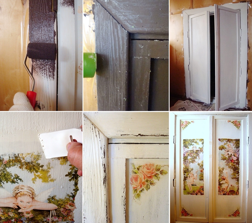 Cara memulihkan pintu lama menggunakan teknik decoupage dan patchwork