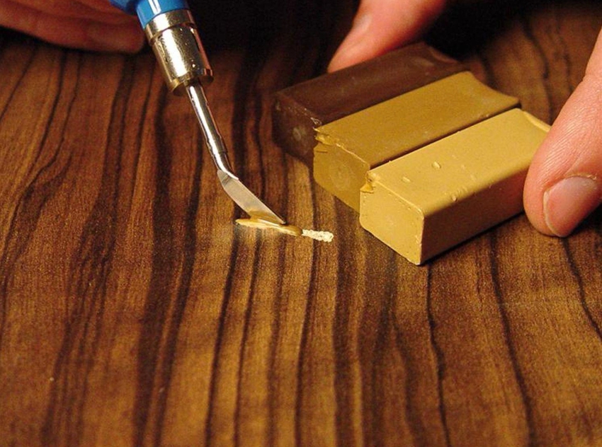 Sekiranya terdapat kerosakan di permukaan, ia mesti diperbaiki dengan pengisi kayu khas dengan warna yang sesuai atau lilin perabot panas. Goresan kecil ditutup dengan pensil lilin.