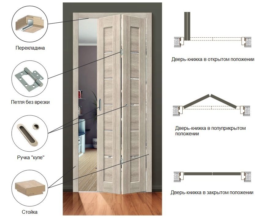 Pemasangan pintu buku tidak memerlukan kemahiran khusus, dan kesederhanaan mekanisme pintu buku membolehkan anda memasangnya sendiri, tanpa bantuan profesional.