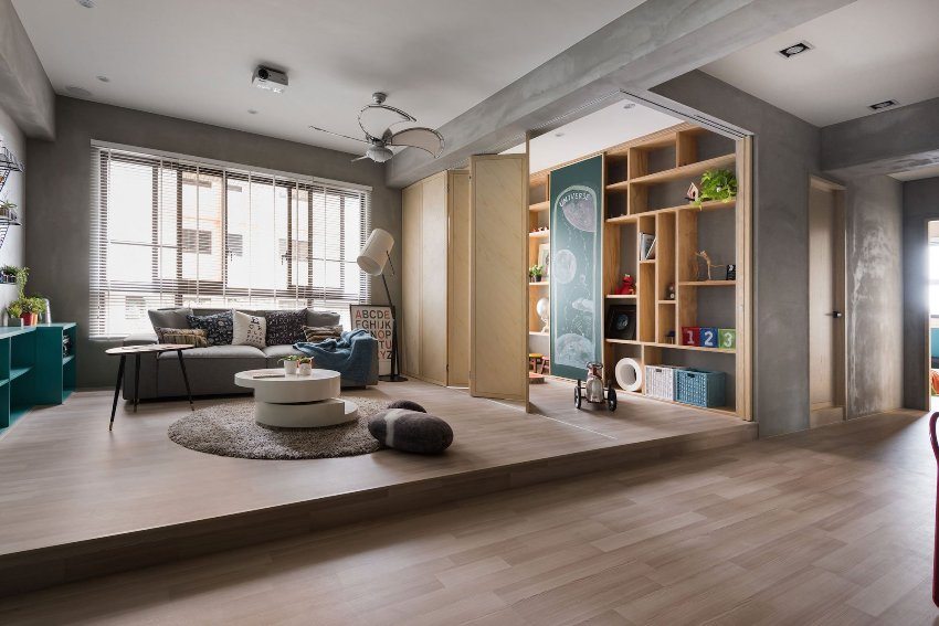 Pintu lipat digunakan sebagai partition antara ruang tamu dan kawasan permainan kanak-kanak