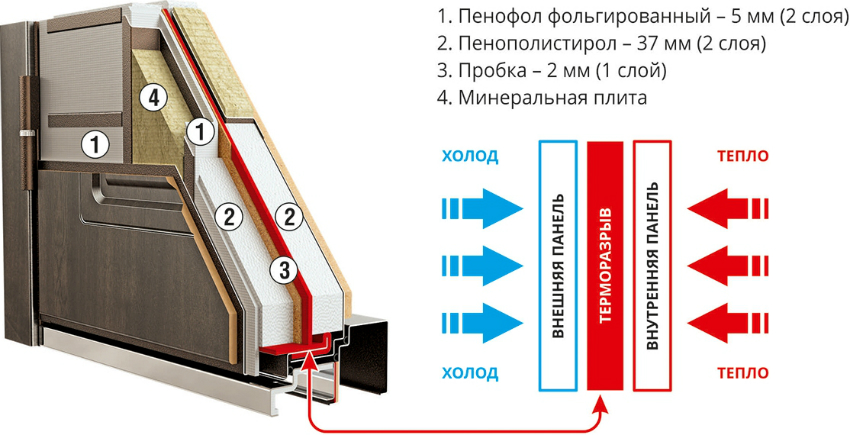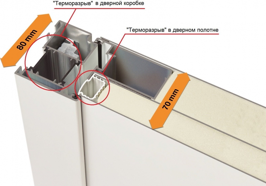 Reka bentuk sedemikian berfungsi berdasarkan undang-undang fizik yang mudah. Perbezaan antara keadaan suhu di jalan dan di dalam rumah diratakan oleh pintu, kerosakan termal berlaku kerana adanya lapisan penebat. Ia diperbuat daripada bahan dengan kekonduksian terma yang rendah. Dalam kebanyakan kes, lapisan ini adalah sisipan poliamida yang terjepit di antara beberapa bahan penebat haba.