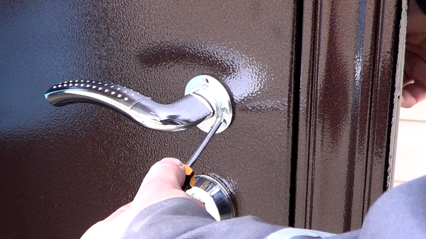 Bagaimana cara melepaskan kunci pintu dengan pemegang? Untuk melakukan kerja jenis ini, anda perlu menyediakan pemutar skru rata dan Phillips. Prosedur dalam kes ini terdiri daripada tiga peringkat. Mula-mula anda perlu melepaskan pegangan dari mekanisme silinder. Seterusnya, pemegang dan plat perisai hiasan khas dibongkar. Pada peringkat akhir, elemen penetapan dikeluarkan, yang memperbaiki bahagian kedua pemegang di daun pintu.