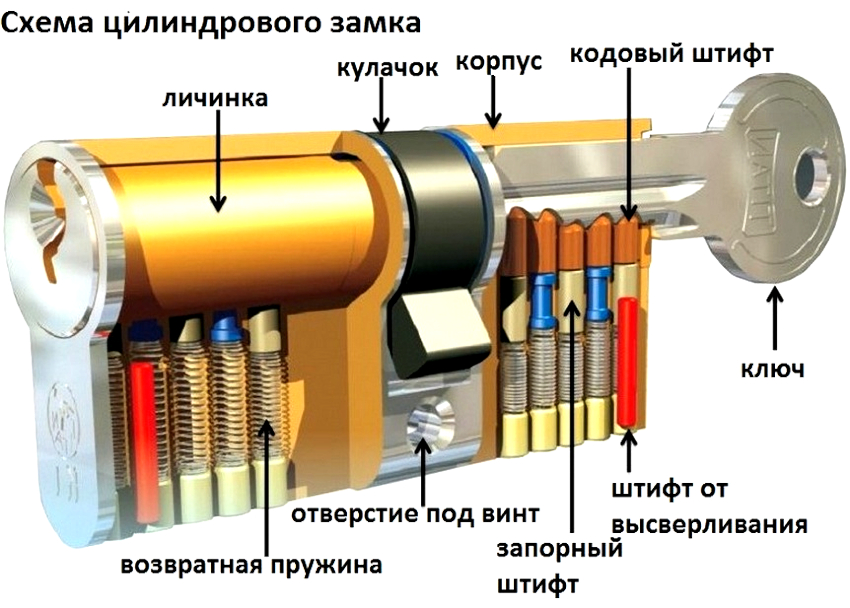 Untuk membongkar alat pengunci silinder, anda perlu membiasakan diri dengan ciri reka bentuknya. Dalam kes ini, semua kerja boleh dibatasi dengan mengganti silinder kunci pintu. Selain kunci, alat silinder merangkumi bahagian berikut: pemegang, plat perisai.