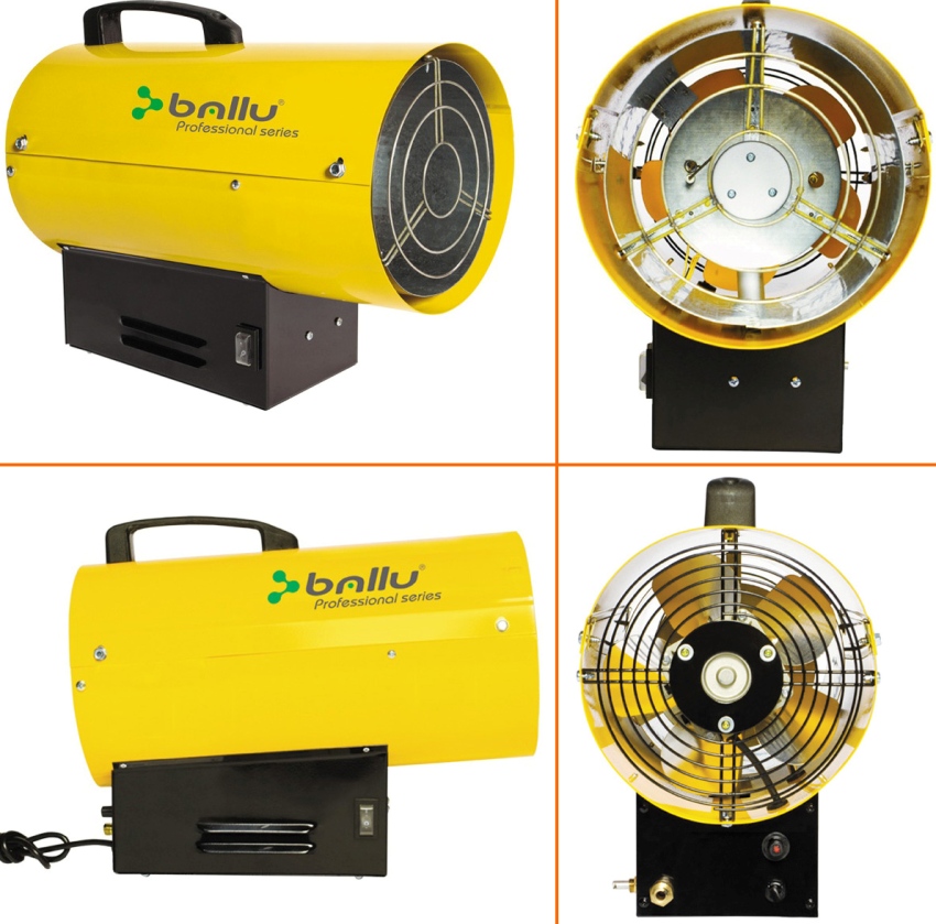 Peranti Ballu BHG-20 S tergolong dalam kategori harga tengah, mampu beroperasi pada butana atau propana. Memanaskan 500 m³ dalam satu jam. Tahap penggunaan bahan bakar ialah 1.2 kg / j. Kekuatan model ini ialah 18 kW. Berat keseluruhan struktur ialah 4.9 kg. Harga purata meriam gas adalah kira-kira 5,000 rubel.