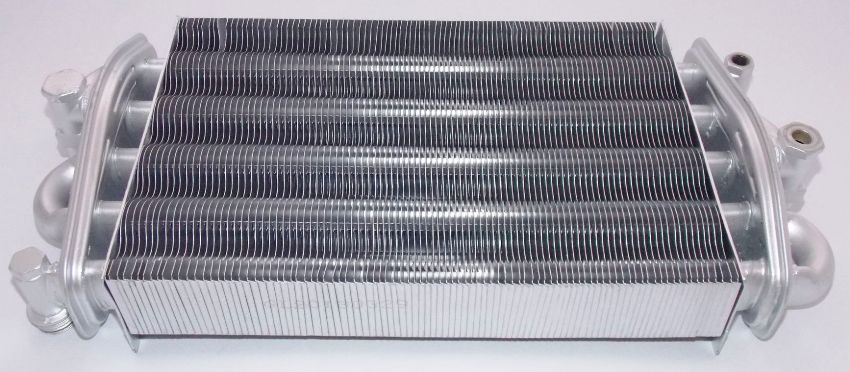 Penukar haba aluminium terutamanya dipasang pada dandang pemeluwapan yang moden dan mahal. Ia adalah aluminium yang dianggap sebagai bahan optimum untuk pembuatan penukar haba, kerana logam ini tidak takut akan kakisan dan pengoksidaan. Dalam beberapa model dandang gas, aluminium digabungkan dengan plat keluli untuk meningkatkan kestabilan dan kekuatan.