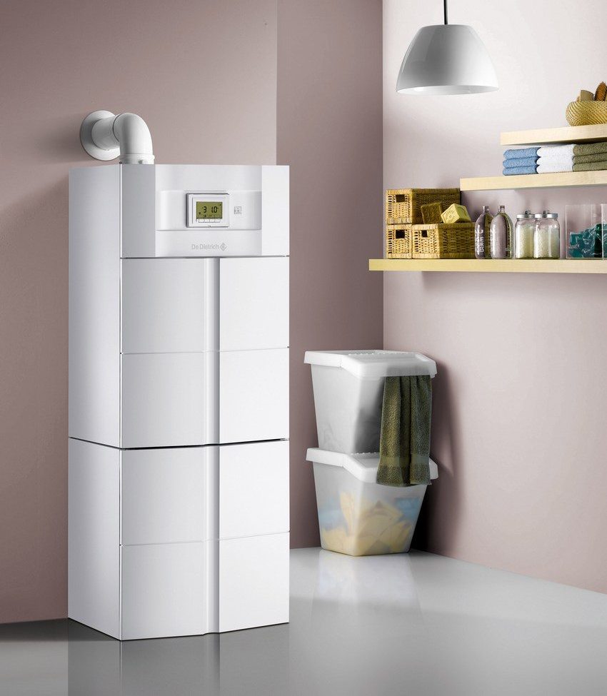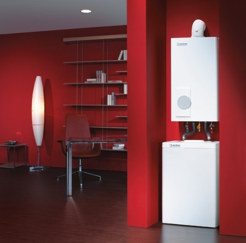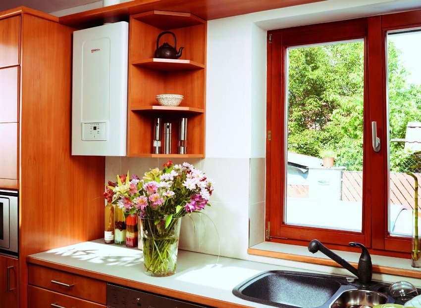 - Kehadiran ruang pembakaran tertutup membolehkan cerobong untuk dandang gas dibawa terus ke sistem pengudaraan atau di luar melalui lubang kecil di dinding.