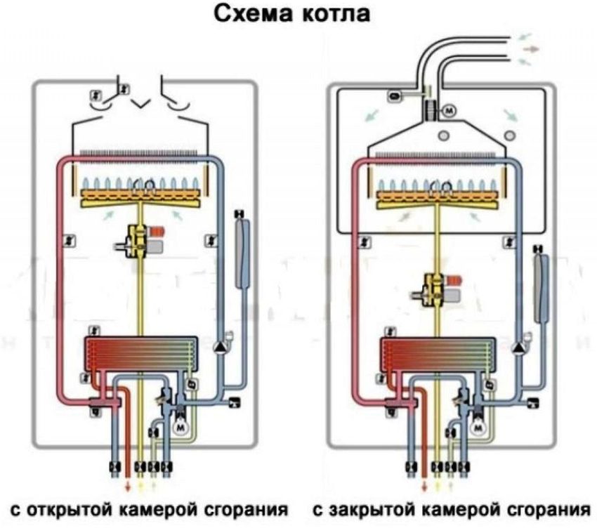 Oleh itu, dandang gas untuk kegunaan domestik mempunyai ruang pembakaran terbuka atau tertutup. Peralatan ruang terbuka menggunakan aliran udara semula jadi, di mana oksigen yang diperlukan untuk reaksi pembakaran berasal dari bilik dan produk pembakaran kembali ke arah yang sama. Oleh itu, pemanas sedemikian memerlukan sistem pengudaraan yang kuat, yang mesti sentiasa berfungsi dan membersihkan udara dari pencemaran.