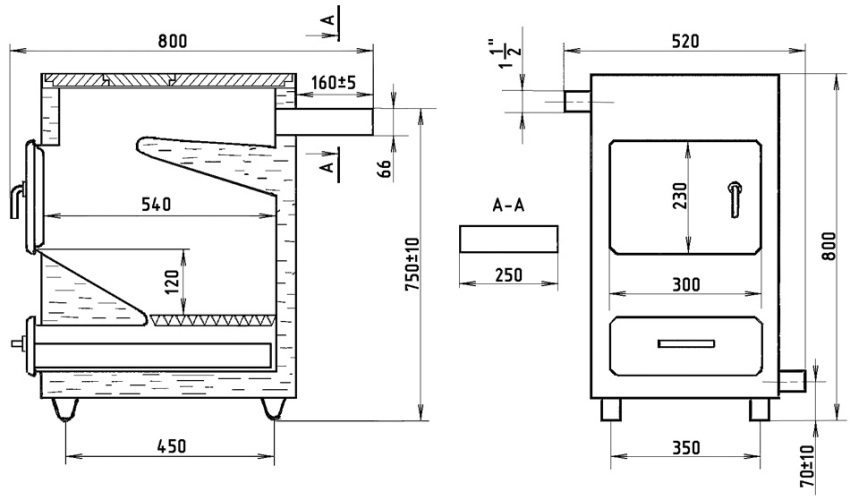 - kami akan menyiapkan tempat di mana unit masa depan akan dipasang. Pangkalan di mana ia akan berdiri mestilah rata, kuat, kaku dan tahan api.Asas konkrit atau besi tuang tebal atau plat keluli sangat sesuai untuk ini. Dinding juga mesti dilapisi dengan bahan tahan api sekiranya kayu;