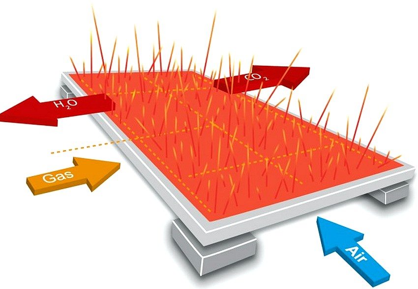 - gas cecair dibekalkan ke plat pemangkin yang dipanaskan, yang, di bawah pengaruh semua faktor, terbakar tanpa membentuk nyalaan.
