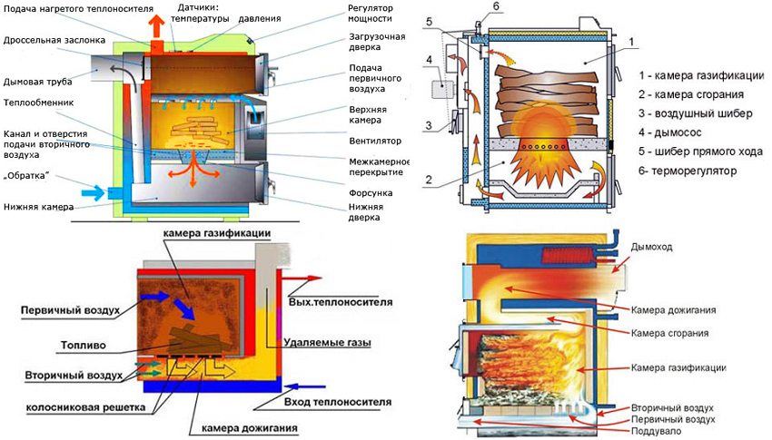 Unit pirolisis adalah salah satu jenis dandang yang lama dibakar. Pemisahan berperingkat proses pembakaran meningkatkan kecekapan dan memperpanjang masa operasi gasifier. Kotak api dandang pirolisis dipisahkan dengan muncung khas. Di petak pertama, di bawah pengaruh suhu tinggi, meletakkan kayu bakar mengeluarkan gas yang mudah terbakar. Yang kedua digunakan untuk produk penguraian kayu selepas pembakaran. Sebilangan minimum abu terbentuk di panci abu, dan cerobong tidak ditumbuhi deposit jelaga.