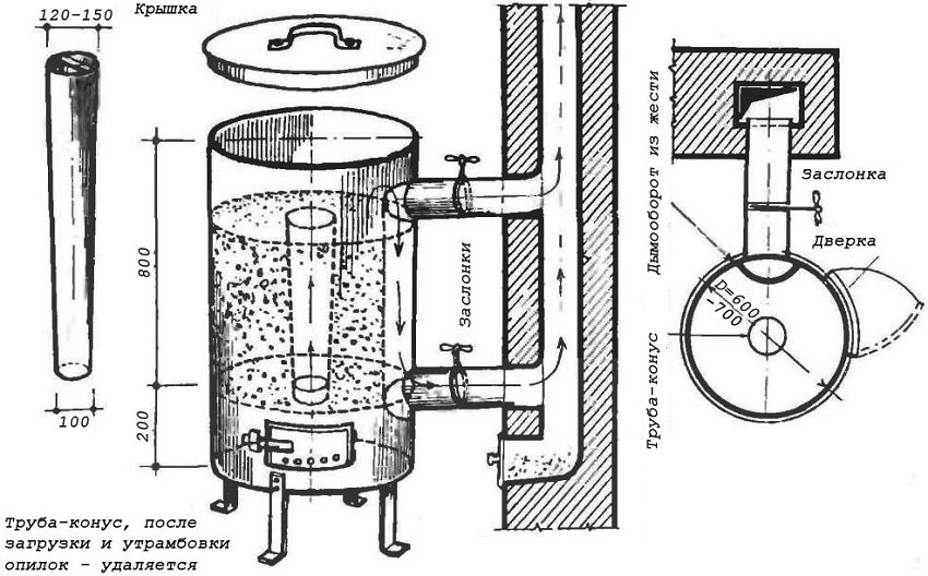 Prinsip operasi dan lukisan dandang pirolisis dengan tangan mereka sendiri