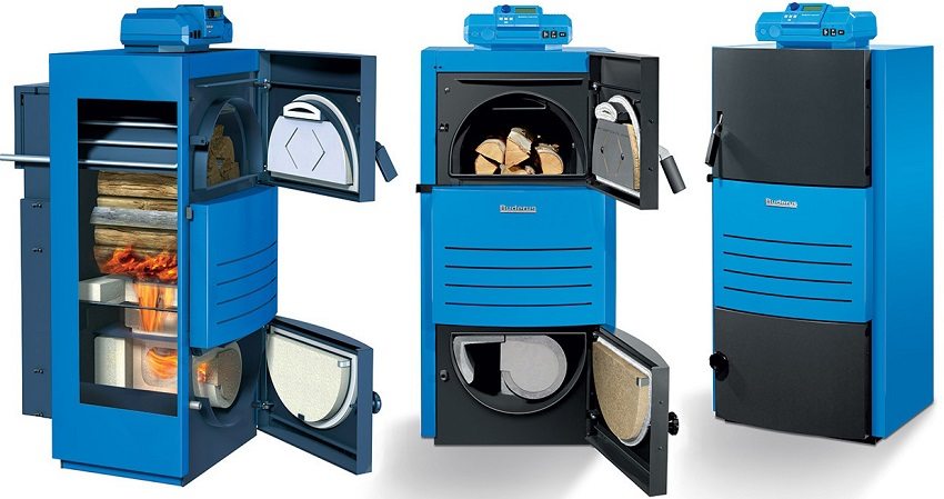 Dandang kayu bakar yang panjang dengan litar air dilengkapi dengan register tubular (menegak) atau penukar haba jenis jaket. Reka bentuk casing praktikal tidak termasuk kemungkinan mendidih air dalam sistem dengan peredaran semula jadi.