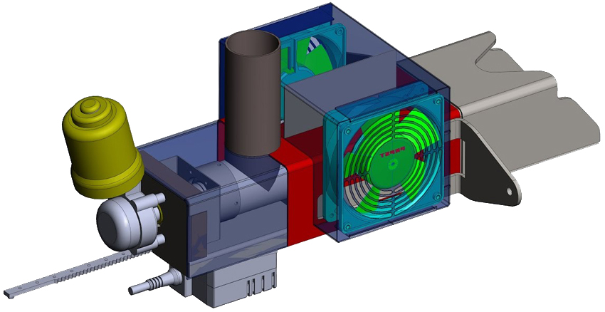Sebagai tambahan, pembakar harus dibekalkan dengan tiupan. Ini akan memungkinkan untuk mempermudah pelancarannya, kerana reaksi terhadap draf dalam struktur cerobong akan berkurang. Untuk peranti dengan kuasa 15 kW, kipas 20 W sesuai. Pakar mengesyorkan membeli kipas yang disebut siput. Ini disebabkan oleh fakta bahawa pengoperasian peranti sedemikian adalah yang paling mudah untuk dikawal.