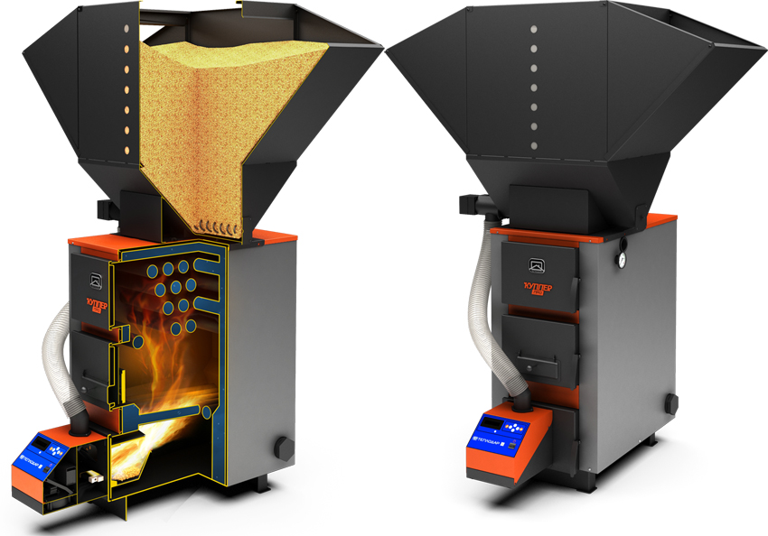 Peranti ini automatik. Ia mempunyai banyak faedah. Produk syarikat ini berkualiti tinggi dan jangka hayat yang panjang. Pembakar jenis ini dilaksanakan bersama dengan hopper, yang dihantar dibongkar. Selain hopper, kit ini termasuk auger yang memberikan pelet, dan juga panel kawalan.