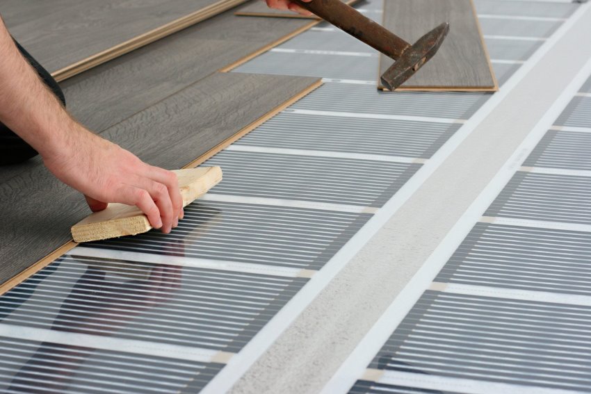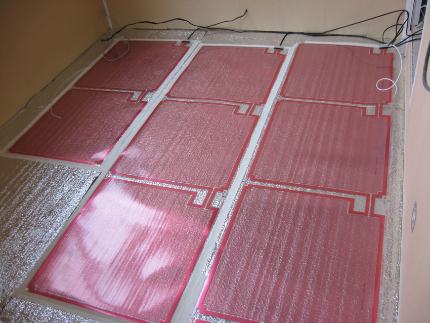 Sebelum meletakkan lamina di lantai yang hangat di balkoni atau penutup lantai yang lain, perlu memasang pemanasan inframerah. Tindakan awal adalah meratakan asas. Kemudian anda boleh meletakkan bahan dengan sifat pantulan panas. Filem ini hendaklah dipotong dengan hati-hati menjadi garis seragam. Selepas itu, cukup untuk memasangnya pada penebat haba yang telah disediakan sebelumnya.
