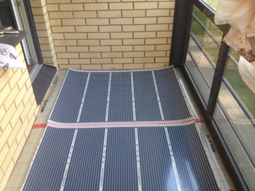 Nasihat berguna! Sekiranya menggunakan lamina atau parket di balkoni, filem inframerah harus dipasang di kawasan yang lebih kecil. Dalam kes ini, lantai tidak akan kering.