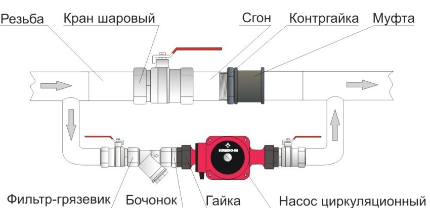 Pam edaran untuk pemanasan dipilih sebagai elemen sistem yang serasi, dengan mempertimbangkan kapasiti nominal dan kepala. Data prestasi pam yang dinyatakan dalam lembaran data mesti sesuai dengan nilai reka bentuk.