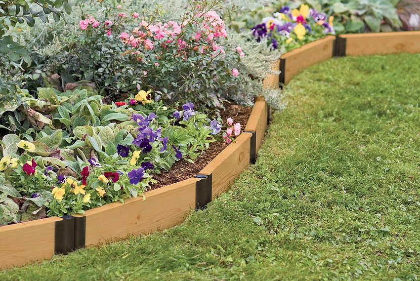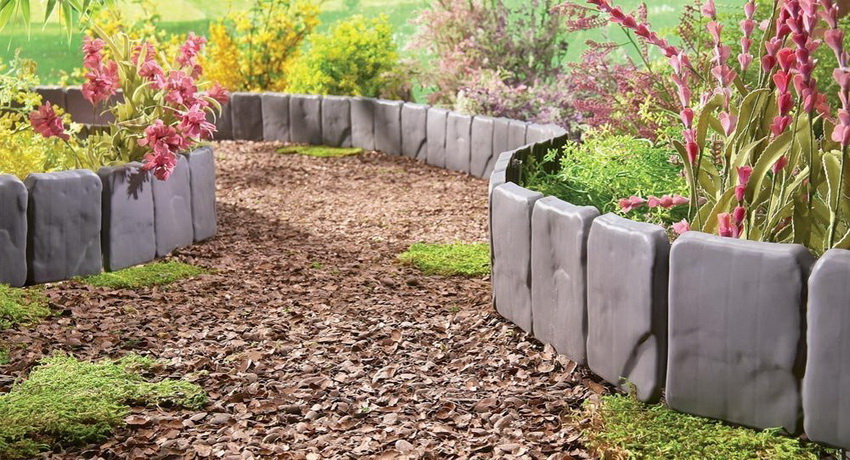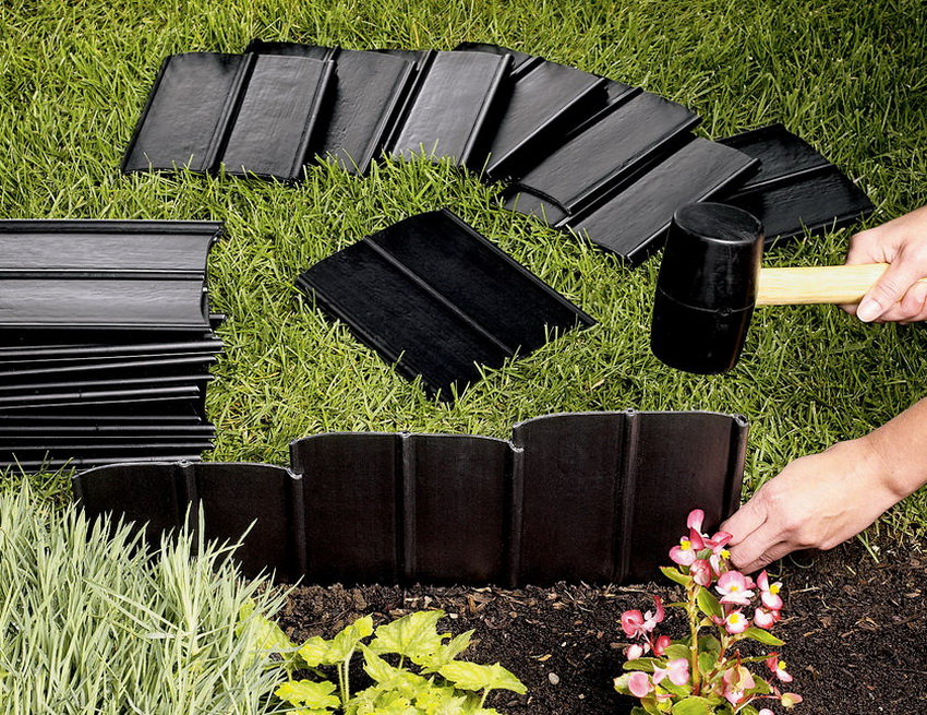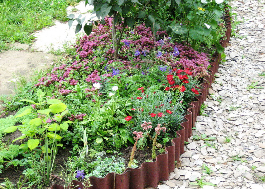 Nota! Penggunaan sempadan membolehkan anda mengekalkan garis kontur taman bunga hiasan sepanjang musim. Pada masa yang sama, produk bertoleransi dengan sempurna pada musim sejuk, berada di tanah.