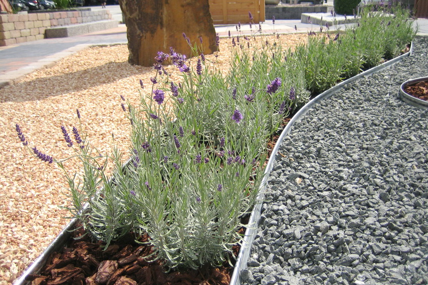 - Oleh kerana kelenturannya, pita boleh digunakan untuk mewujudkan katil dan katil bunga dengan bentuk yang tidak biasa, garis geometri yang jelas atau bergelombang;