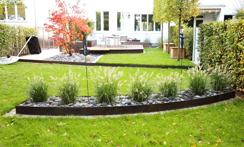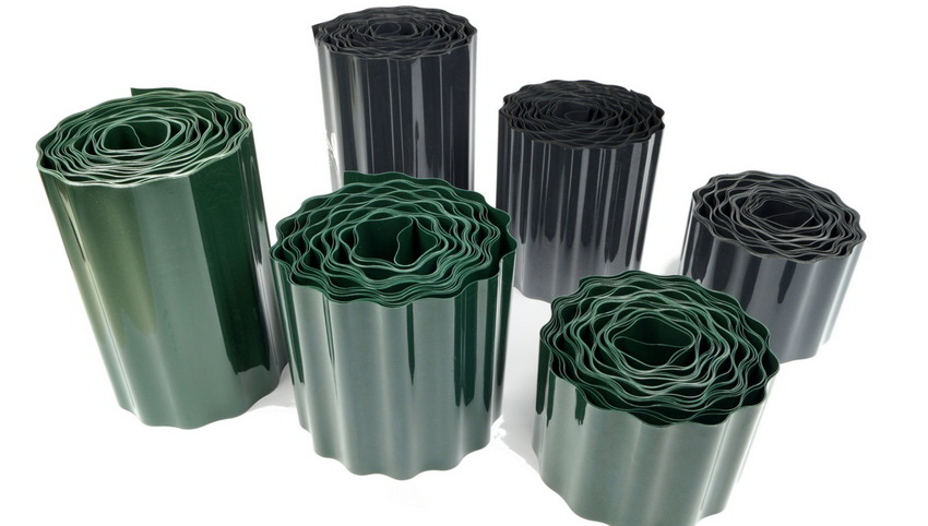 Nasihat berguna! Untuk katil dan katil bunga biasa, lebih baik menggunakan sempadan reben hijau atau coklat, yang tidak akan menonjol dengan latar belakang tumbuh-tumbuhan. Produk berwarna sesuai untuk katil bunga dan rumput bertingkat dengan reka bentuk yang tidak biasa.