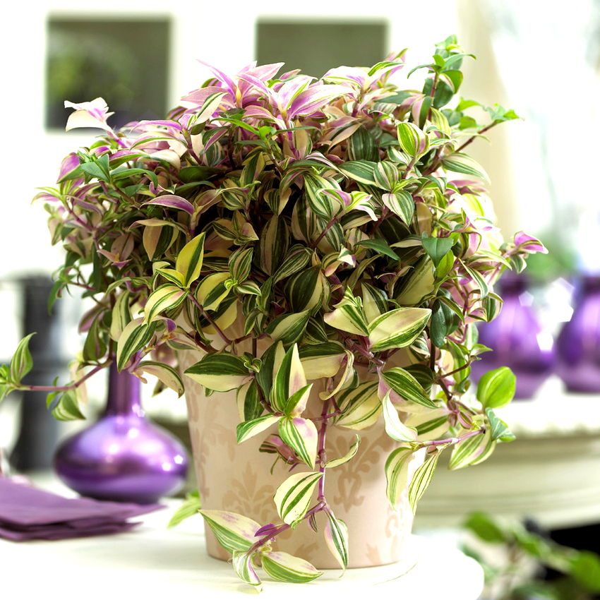- Tradescantia. Daun memberikan kesan hiasan tanaman ini.