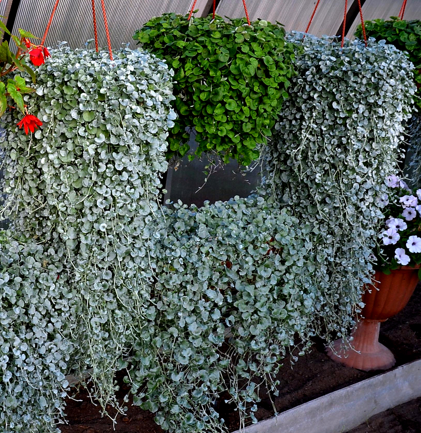 Jenis yang paling umum adalah "air terjun perak" dichondra dan "air terjun zamrud". Batang yang jatuh dengan lebat, agak lurus benar-benar berkaitan dengan air terjun. Perkataan "perak" dan "zamrud" menunjukkan warna daun.