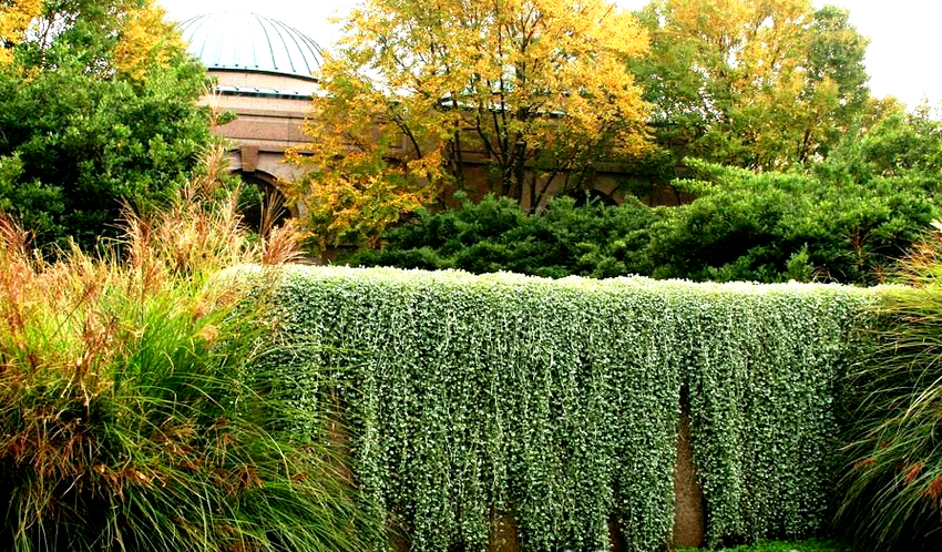 5. Ivy berada di kedudukan kelima. Ini menghasilkan latar belakang yang bagus untuk tumbuh-tumbuhan dengan warna-warna cerah. Jenis ivy yang berbeza mempunyai perbezaan warna daun: hijau gelap, hijau dengan garis putih, hijau dengan bintik putih, dan lain-lain. Tumbuhan ini abadi, tidak memerlukan penjagaan khas, terasa baik walaupun di tempat yang teduh.