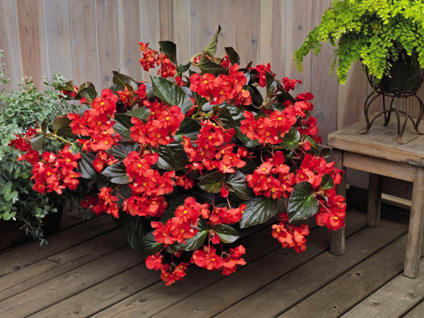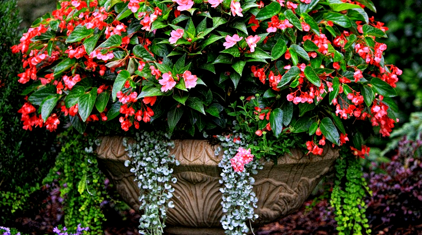 4. Begonia berada di kedudukan seterusnya. Salah satu tanaman ampel yang paling berubah-ubah. Tidak bertolak ansur dengan cahaya matahari langsung, draf, memerlukan penyiraman yang banyak, "menderita" ketika menukar lokasi. Dengan penjagaan yang betul, ia menyenangkan dengan warna cerah dari nuansa hangat.