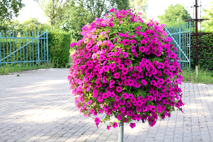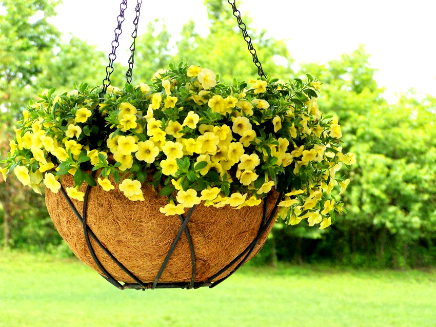Jenis bunga yang paling biasa untuk pasu gantung adalah petunia. Populariti yang tinggi disebabkan oleh ciri-ciri kilang berikut: