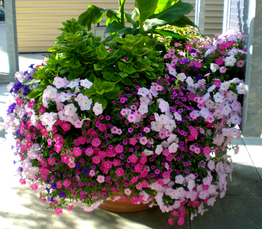 1. Tempat pemenang telah lama diduduki oleh petunia. Kepelbagaian spesies (dengan tunas kecil, besar, monokromatik, berwarna-warni) dan bersahaja menjadikannya kegemaran ramai tukang kebun dan kedai bunga. Sebilangan besar foto petunia di dalam pasu bunga, yang merupakan hiasan kawasan yang terang dan asli dalam perkembangan reka bentuk, merupakan pengesahan kepemimpinan yang jelas.