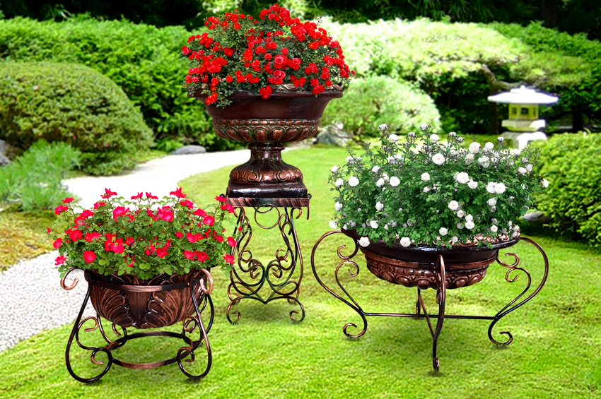 Bunga jalanan di dalam pasu sebagai elemen hiasan landskap