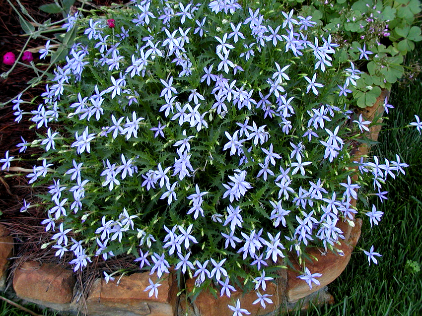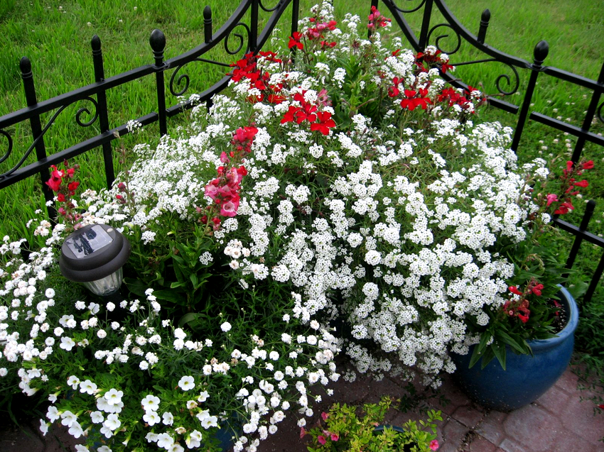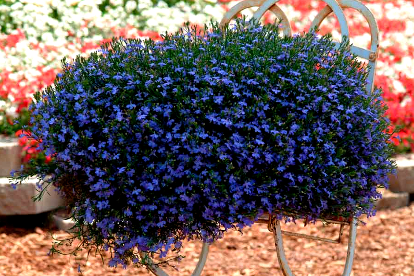 3. Hasil ketiga adalah untuk lobelia. Memerlukan penyiraman biasa, suka kehangatan. Bunganya kecil, boleh berwarna putih, biru atau merah jambu. Tumbuhan ini juga boleh ditanam sebagai kawasan tepi jalan.