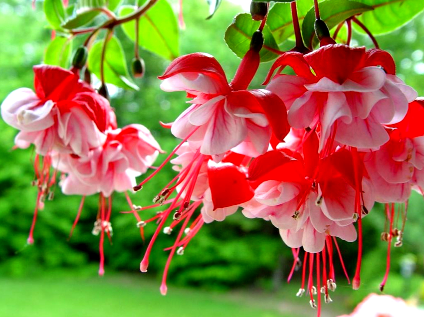 Bunga ampel untuk pasu: menggantung pelbagai bentuk dan warna