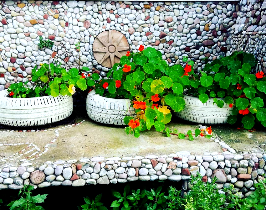 Di kawasan terbuka taman, anda boleh mengatur tab mandi lama (dan, jika anda mahu, yang baru) dan meletakkan pot bunga dengan bunga di atasnya. Berjalan di taman seperti itu akan membawa banyak keseronokan.