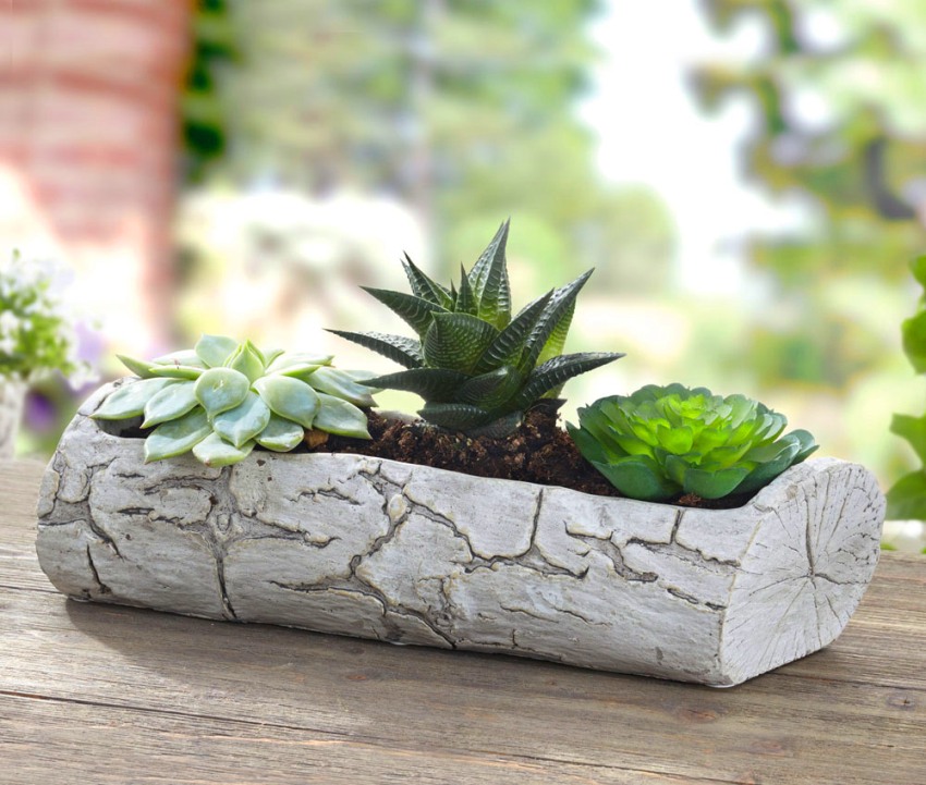 Hiasan taman yang sebenar akan menjadi penanam lantai kayu. Untuk ini, anda boleh menggunakan batang, batang kayu atau tebal. Untuk mendapatkan penanam kebun, intinya dikeluarkan dari kayu. Lubang yang dibentuk dibersihkan dan digosok dengan baik.