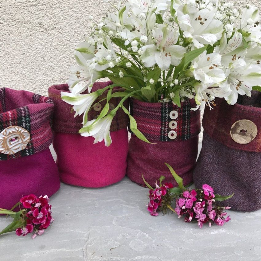 Menggunakan kain, benang dan kertas untuk membuat penanam
