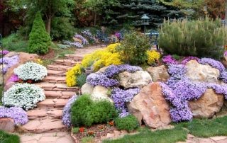 Tumbuhan untuk slaid alpine: nama dan gambar. Jenis bunga dan pokok renek yang sesuai, skema penempatannya. Cadangan untuk menurunkan dan pendaftaran. Sempadan dalam reka bentuk landskap.