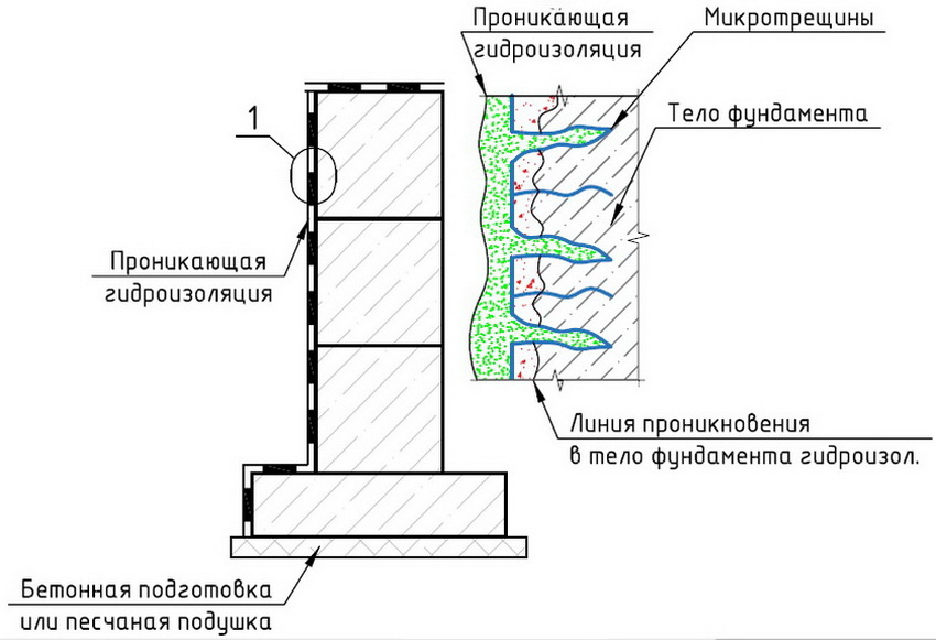 Penggunaan bahan sistem Penetron untuk kalis air ruang bawah tanah dengan tangan anda sendiri