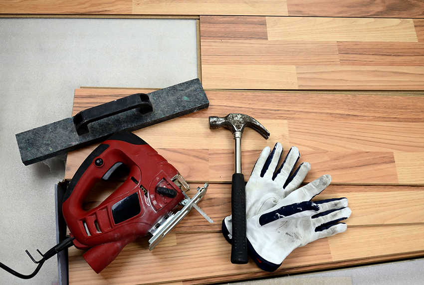 - Sebelum melekatkan, disarankan untuk menyebarkan papan di lantai untuk memeriksa konsistensi warna dan ketiadaan cacat. Sekiranya terdapat papan yang berbeza warna atau teksturnya, ia dapat digunakan di tempat yang tidak mencolok, misalnya, di bawah perabot.