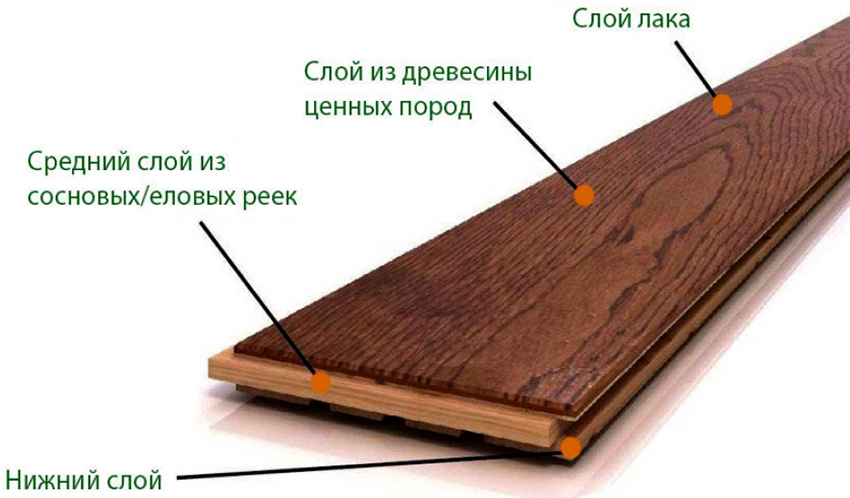 Ciri utama penutup lantai adalah strukturnya. Seperti kejuruteraan, papan parket terdiri daripada tiga lapisan: