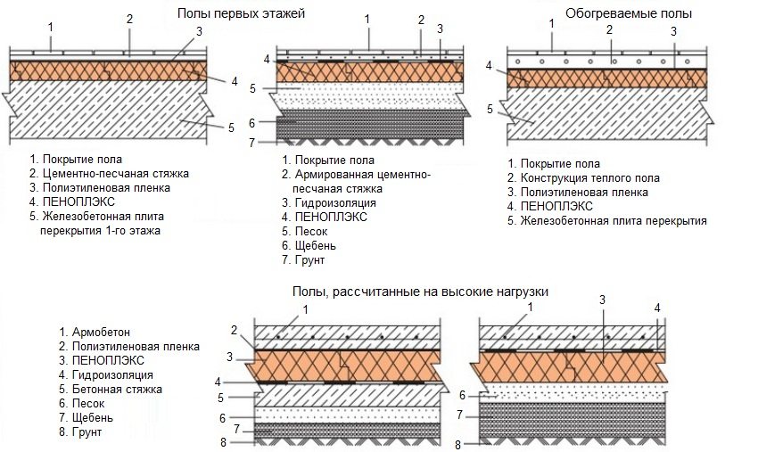 Terdapat beberapa alas lantai yang dapat dilindungi dengan busa. Tidak ada perbezaan yang signifikan mengenai apa yang diletakkan pada papak penebat... Perkara utama di sini adalah keperluan alat kalis air untuk penoplex. Ini berlaku untuk semua jenis pangkalan. Papak itu sendiri boleh diletak tanpa dipasang atau dilekatkan dengan gam atau skru penyekat diri khas dengan mesin basuh plastik. Sendi antara papak dilekatkan, berbuih buih poliuretana atau penebat dengan pita.
